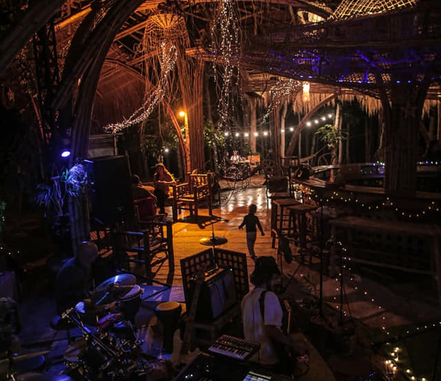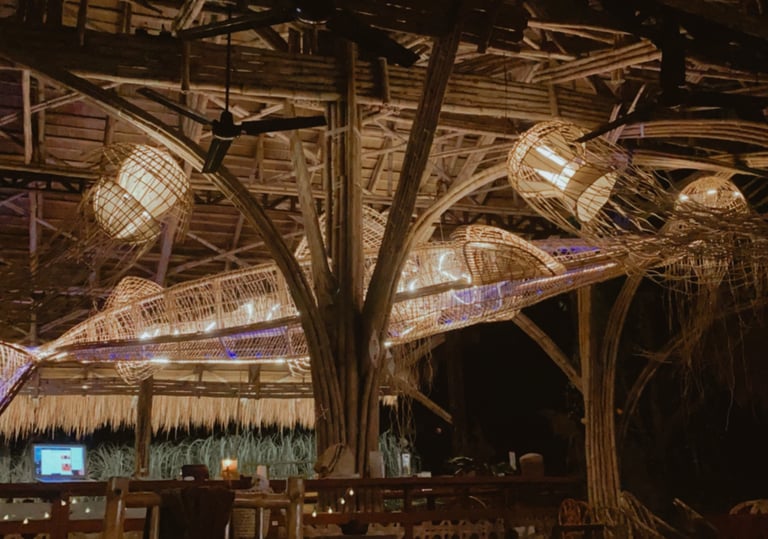 Enjoy the sunlight stream through our 4 hectare property, at the heart of which sits our giant bamboo pavilion, built to showcase local building techniques and artists. Our saltwater pool can be rented for sunset sorties, and private huts tucked away in the forest can be your home for a few nights.
